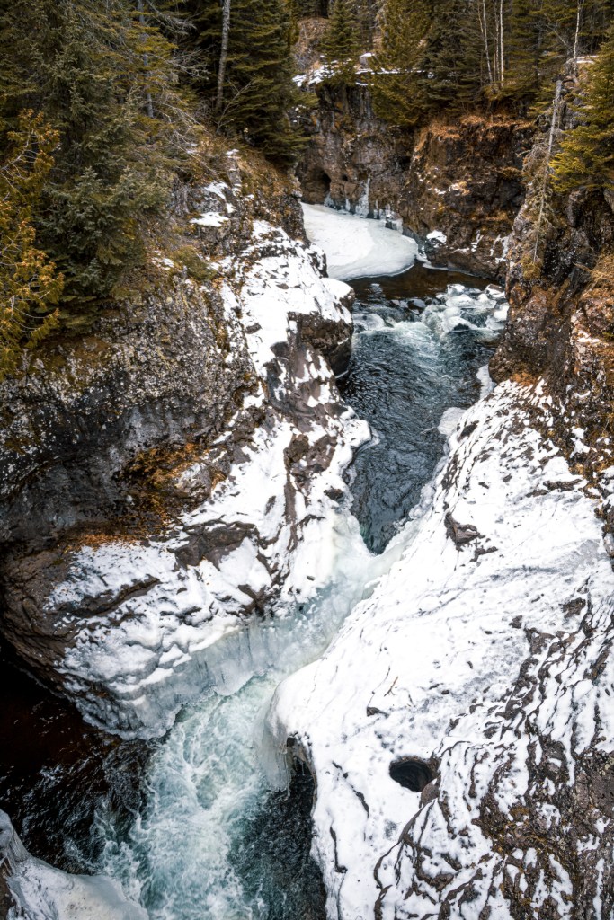 Judge CR Magney State Park located between Grand Marais and Grand Portage has two beautiful waterfalls that are just as magical frozen in the winter as they are rushing in the spring.